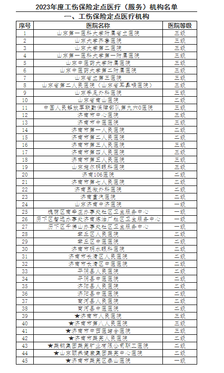 2023年度工傷保險定點醫(yī)療(服務)機構名單